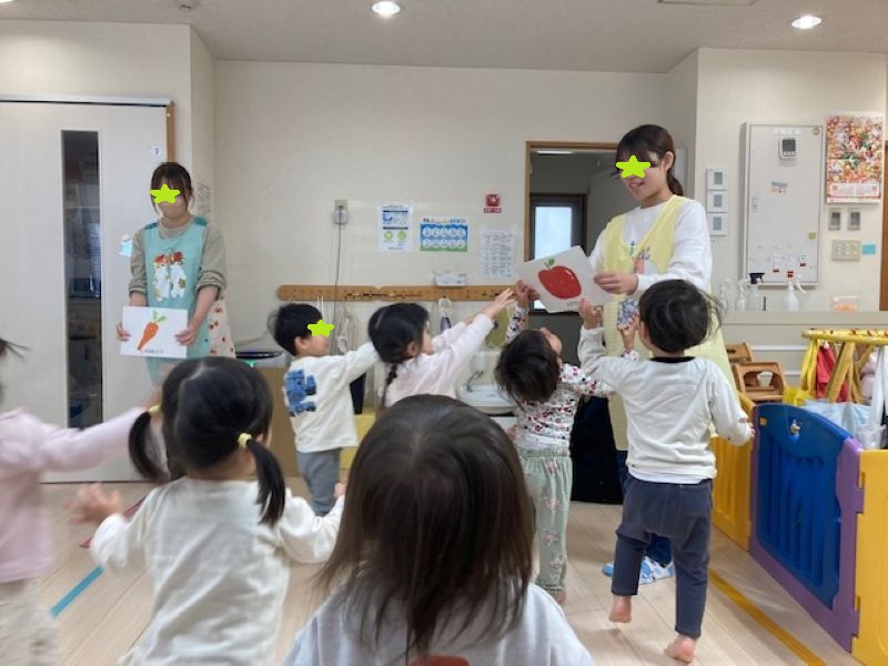 ジュリー先生が「which is the apple 」カードあそびをしました。