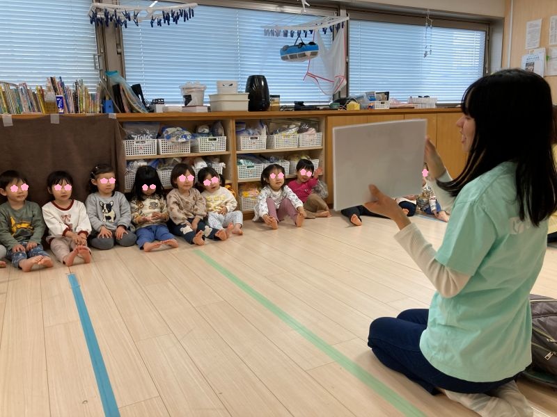 まず始めに動物の鳴き声を聞いて絵カードをみました!