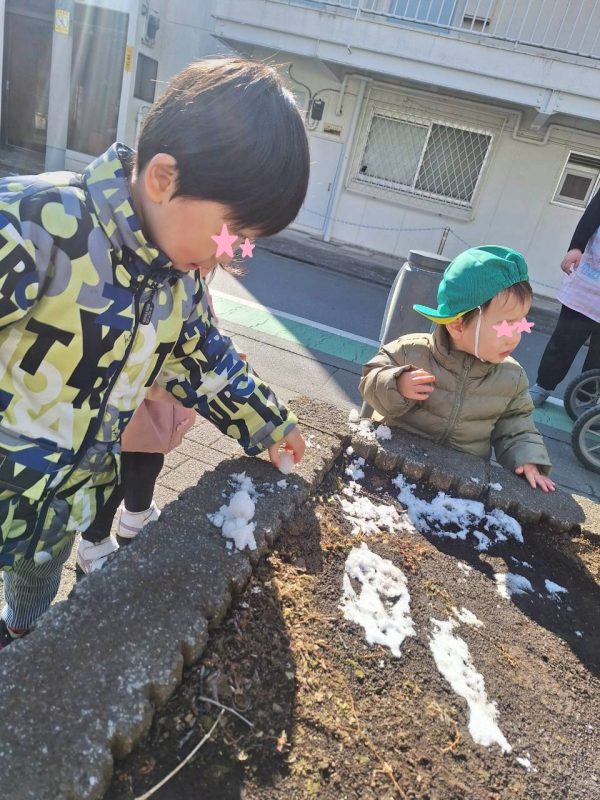 めばえ組さんも初めての雪に興味津々‼️